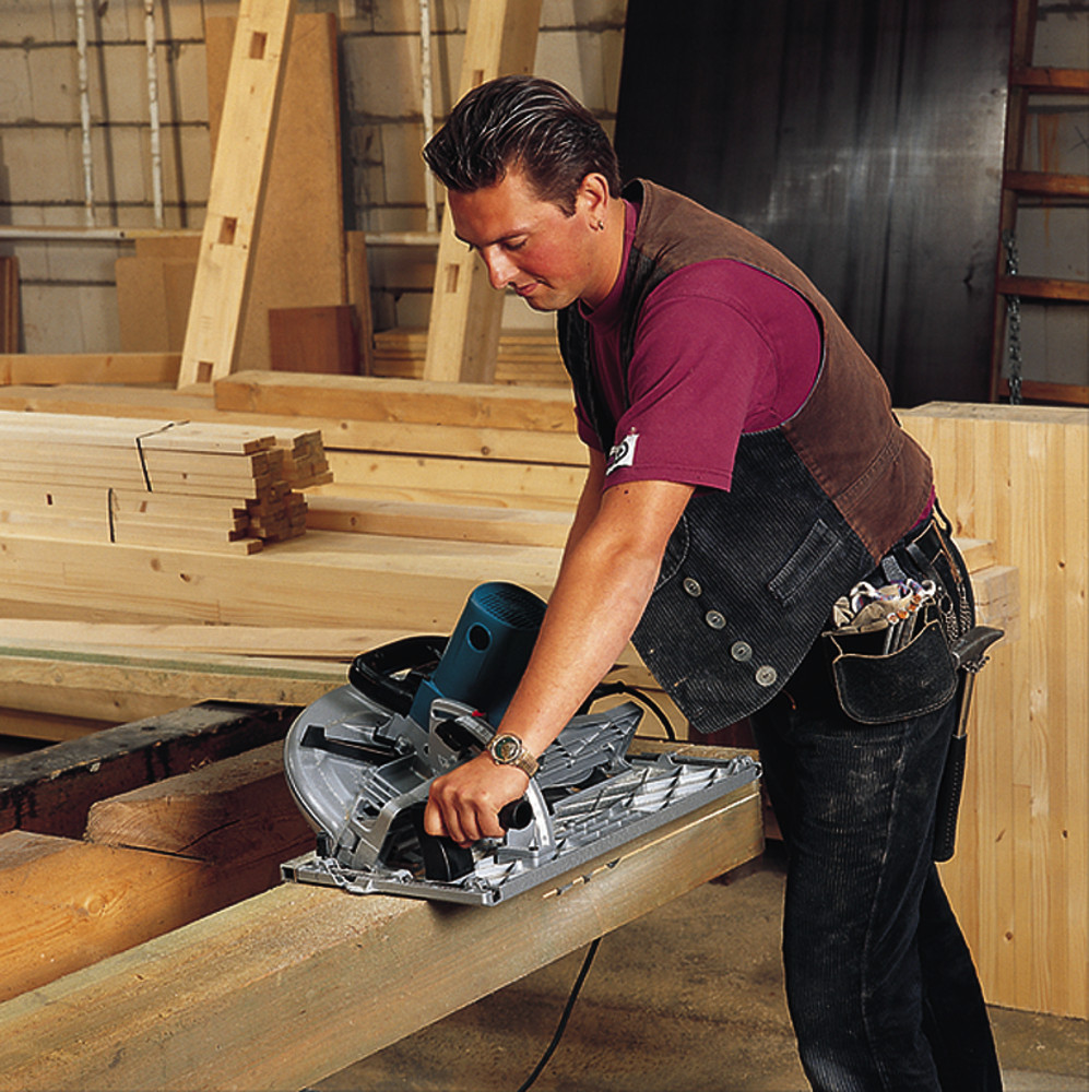Große Handkreissäge mit einem 2,200 W Motor und einer Drehzahl von 2,700 min-1, Mit einem Sägeblattdurchmesser von 355 mm erreicht die Maschine eine Schnitttiefe von max, 130 mm, Sanftanlauf für zusätzliche Sicherheit, Die vollkugelgelagerte Struktur sowie der Motor der Maschine gewährleisten eine lange Lebensdauer,