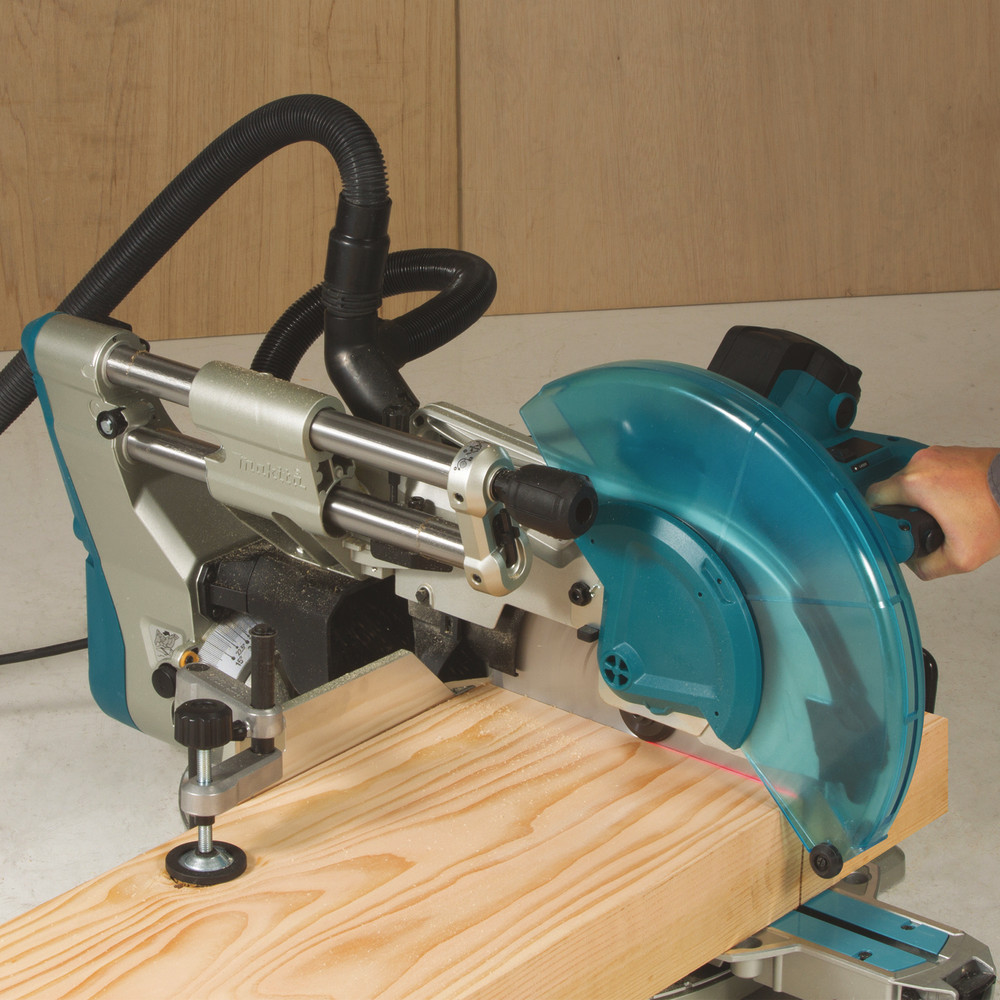 Eine präzise Kapp- und Gehrungssäge mit einem 1.800 W Motor für den professionellen Einsatz. Mit einem Sägeblattdurchmesser von max. 305 mm wird eine Schnittleistung von 92 x 382 / 107 x 363 mm erreicht. Mit Dual-Slide-System für verringerten Platzbedarf. Ausgestattet mit einer exzellenten Staubabsaugung und einem Laser, der die Schnittlinie anzeigt.