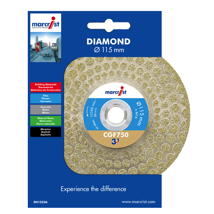 Alle Diamanttrennscheiben der Marke Marcrist sind nach den höchsten Sicherheitsstandards der europäischen Norm EN 13236 gefertigt und geprüft.