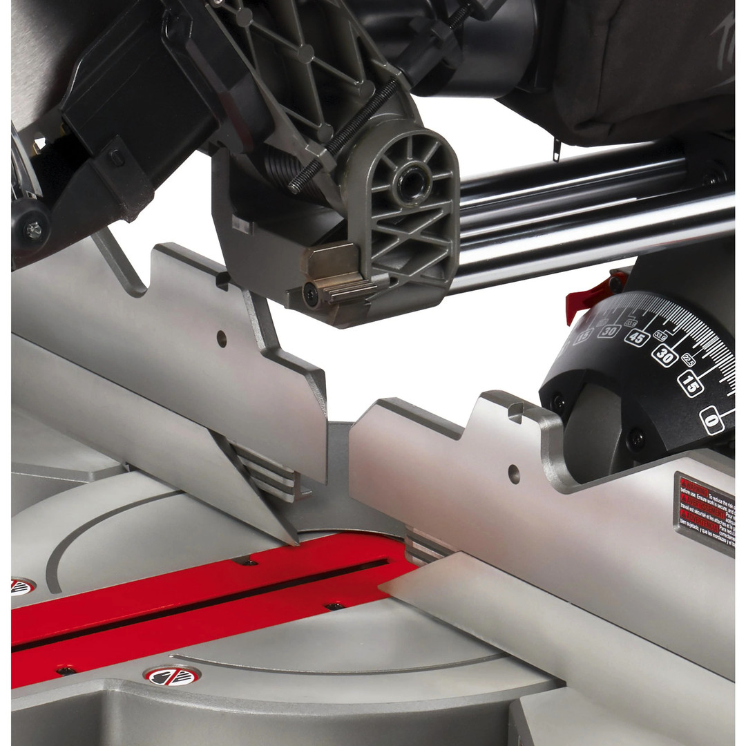 - Lange Seitenanschläge unterstützen den Materialfluss und ermöglichen Stabilität und präzise Schnittergebnisse
