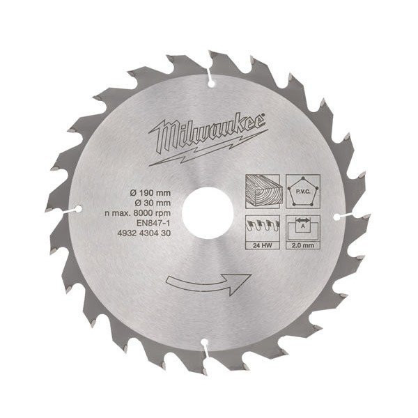 MILWAUKEE HM-Kreissägeblatt 190x1,6x30 WZ Z24