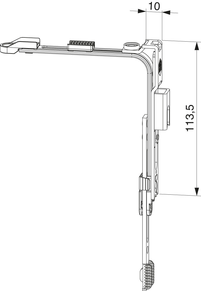 MM Eckumlenkung für Stulpflügelgetriebe kurz mit Riegelausschluss mit Schließteil FFB 225-319 FFH 275-359 silber
