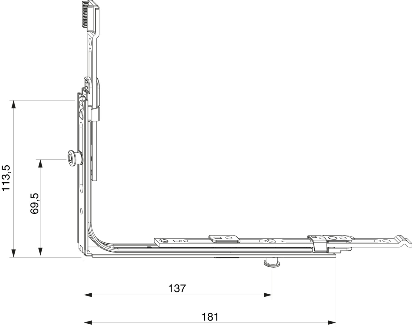 MM Eckumlenkung waagrecht für Kipp-Dreh für variable Getriebe verlängerbar mit 2 i.S. FFB 320-1.800 FFH 470-2.800 silber