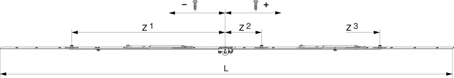 MM Kantenverschluß mittig mit Kippschere DM 15 1700 mit 3 i.S. FFB 1.301-1.700 Tricoat-Evo