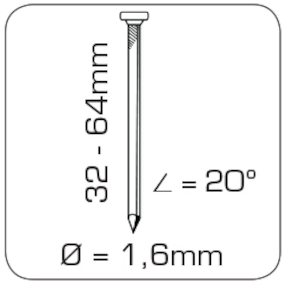 Impulse Stiftnagler für 20° magazinierte F16 Stauchkopfnägel von 32 bis 64 mm