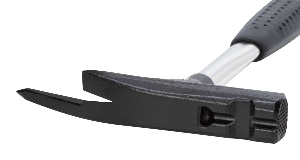 Mit magnetischem Nagelhalter, mit Kopfsicherung, Hammerkopf fein und blank, Klaue und Spitze besonders gehärtet, Chrom-Molybdän-Stahlrohrstiel, mit braunem Kunststoffgriff.