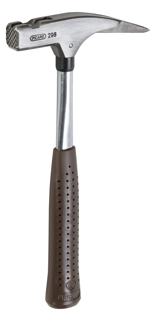 Ein sorgfältig ausgeformter, geschmiedeter Hammerkopf, sitzt unverrückbar auf einem nahtlosen Rohr aus Spezialstahl. Der Klassiker. Kopf fein blank geschliffen, transparent spritzlackiert, korrosionsgeschützt Aus legiertem PICARD-Spezialstahl, sorgfältig gehärtet und angelassen Mit magnetischem Nagelhalter Hohes Auge = Lange Stielaufnahme im Hammerkopf Mit Kopfsicherung Chrom-Molybdän-Stahlrohrstiel DIN 7239