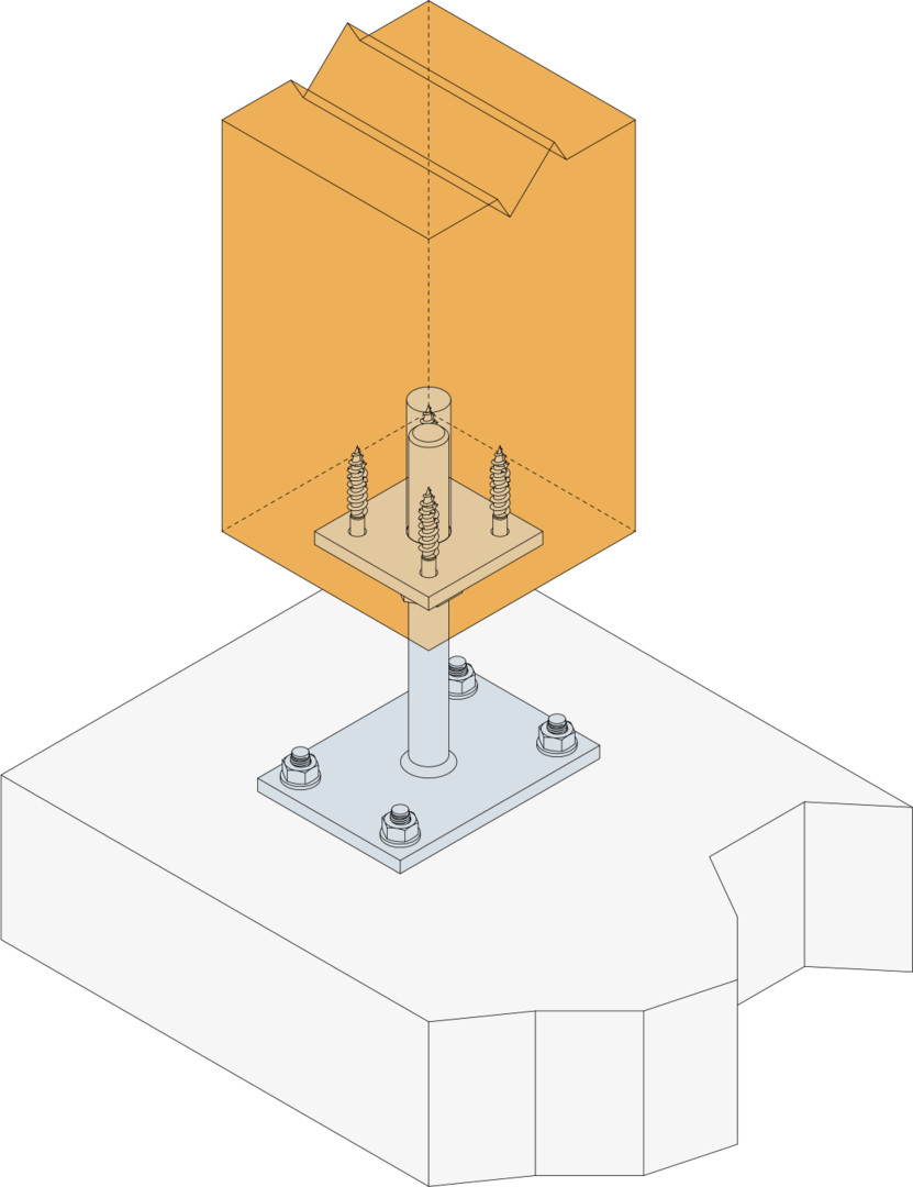 Die Stützenfüße PPB / PPS eignen sich zur Montage von Stützen / Pfosten, die nur auf Druck beansprucht werden.