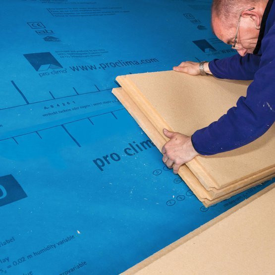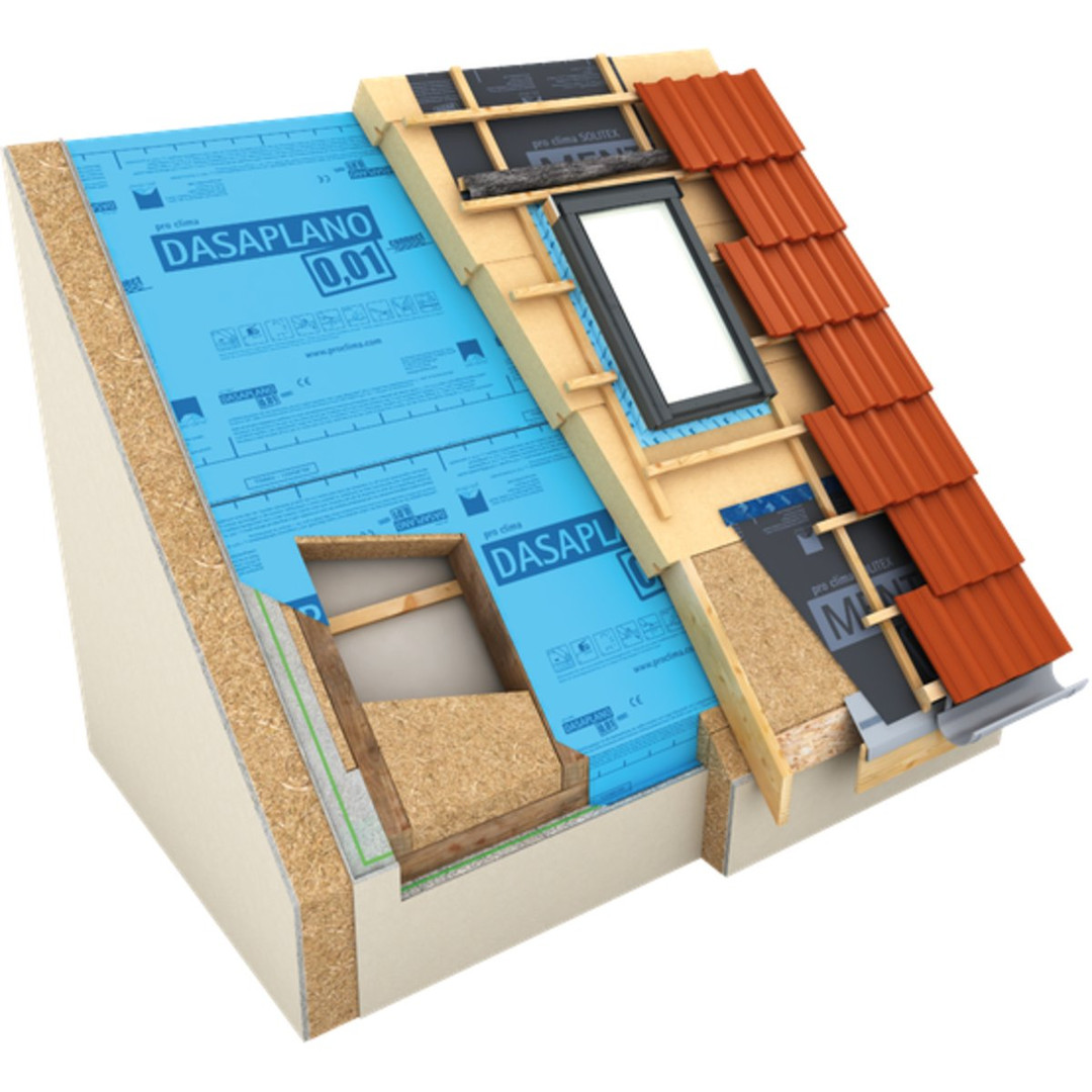 - Einfache Herstellung der luftdichten Ebene: Verlegung flächig über Sparren und Dämmung