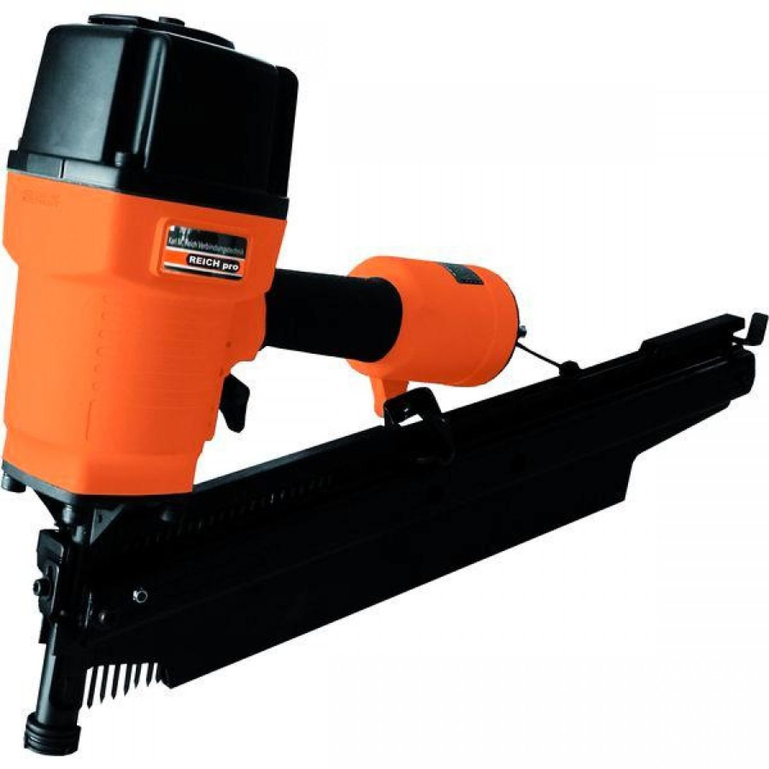 Handlicher, schlagstarker Streifenmagazinnagler. Mit Einschlagtiefenverstellung-verhindert Einschlagmarkierungen, ideal an der Fassade, umschaltbar von Einzel- auf Kontaktauslösung. Gehäuse aus Spritzguss. Ideal für Zimmerei, Dachdecker und Holzbau, Schall- und vibrationsgedämpft.