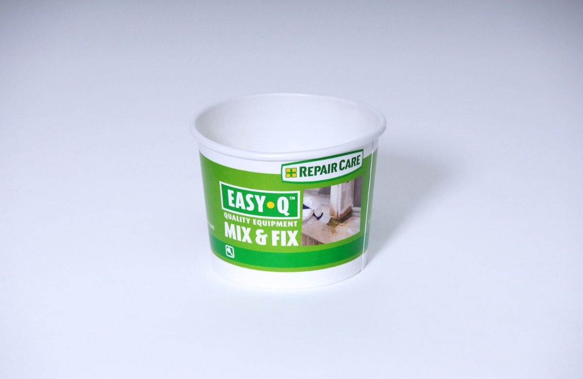 Der Becher ist aufgrund der speziellen Innenbeschichtung resistent gegen freigekommene Hitze der Reaktion beim Mischen von DRY FIX® und DRY SHIELD™.
