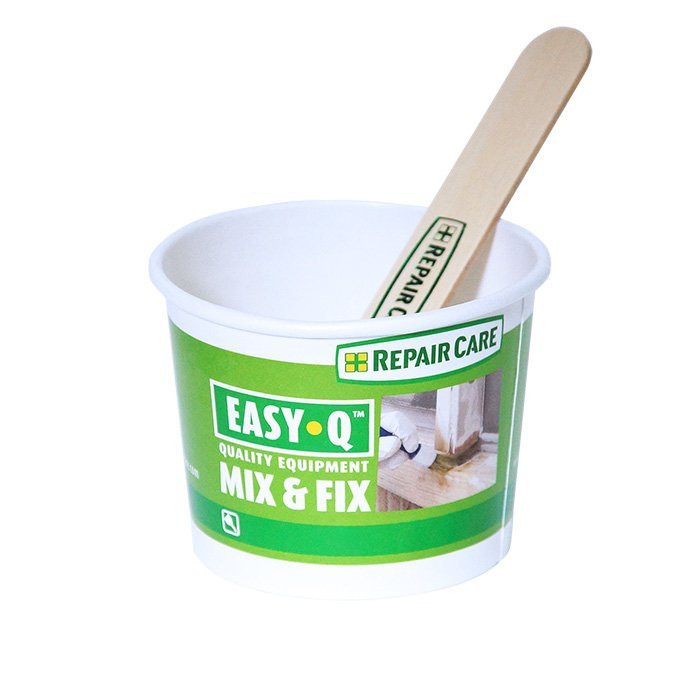 Mischbecher und hölzerne Spatel zum Mischen von DRY FIX® und DRY SHIELD™.