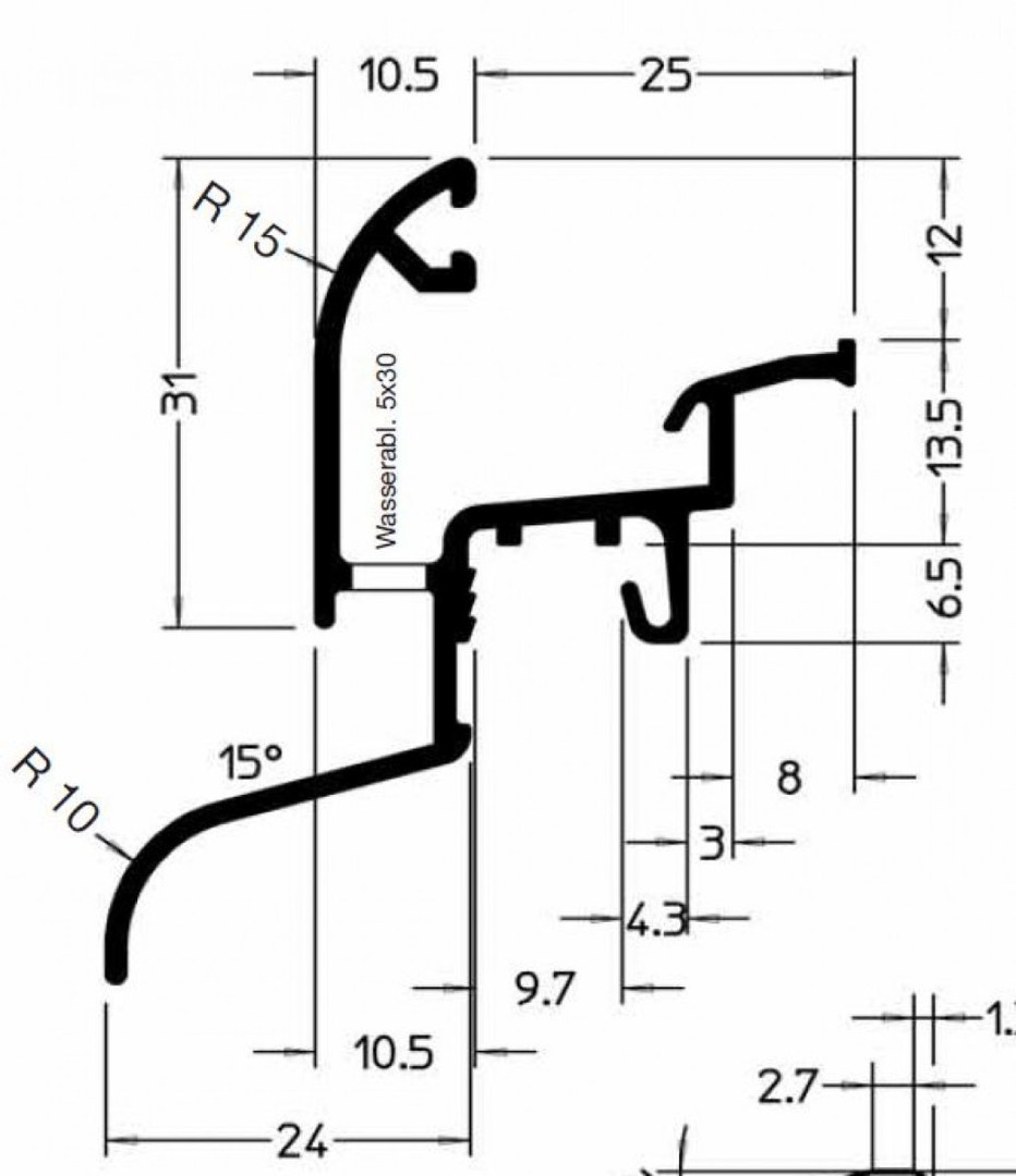 Regenschiene m. Stockabdeckung Drau 25/24 F R. 9016 weiß