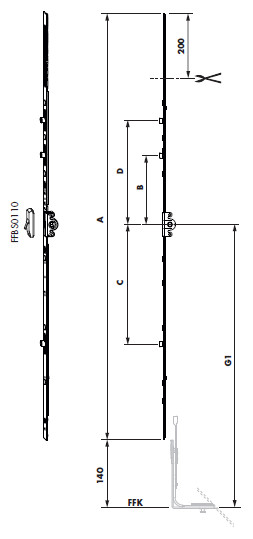 SIEGENIA AF Getriebe 15 konstant Gr.70 1RS 701-900mm