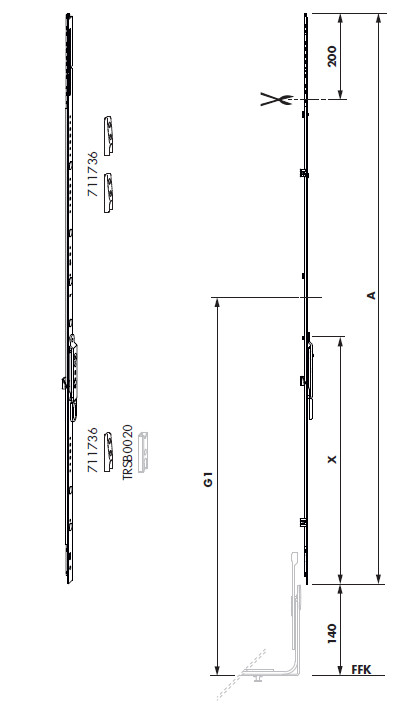 SIEGENIA AF Stulpgetriebe 16 konstant Gr.200 3SB70 2001-2200mm