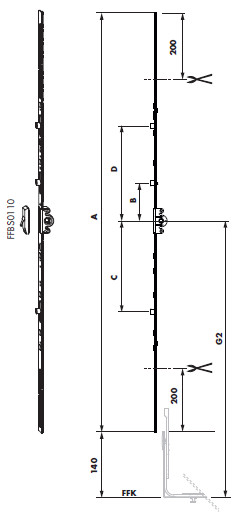 SIEGENIA AF Stulpgetriebe variabel Gr.120 1201-1600mm