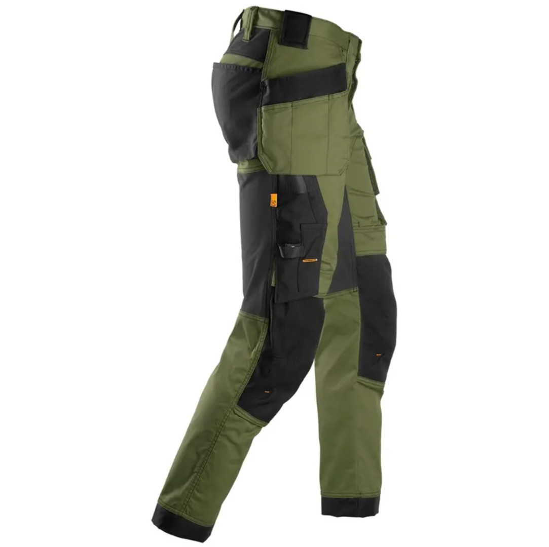 SNICKERS Stretch-Arbeitshose "6241 3104" - Khakigrün/Schwarz - mit Holster - Gr. 48