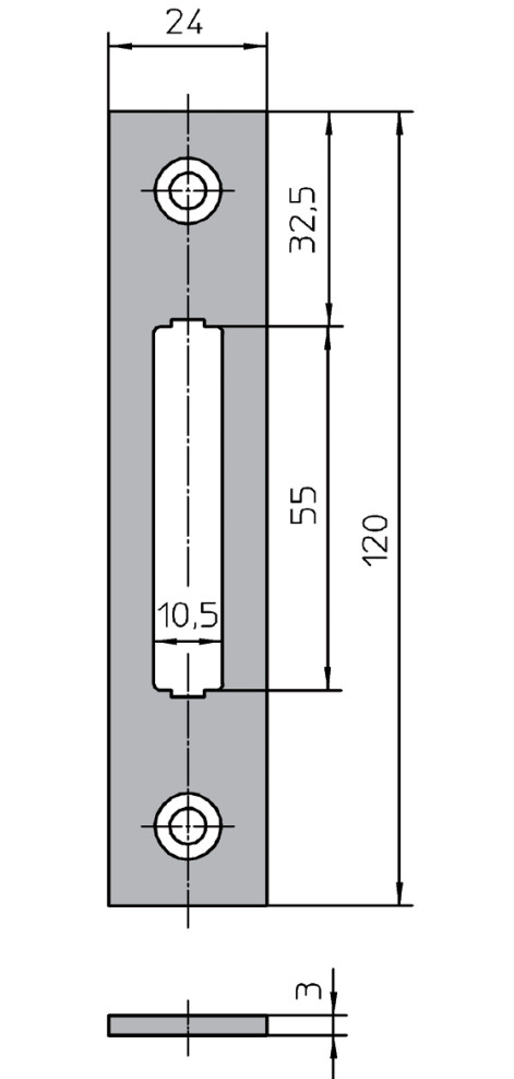 Für Riegelschloss, Abmessung: 24 x 3 x 120 mm, käntig.