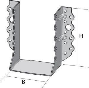Balkenschuh mit Rippen zur Aufnahme höherer seitlicher Lasten. Für Anschlüsse von Nebenträgern aus Holz oder Holzwerkstoffen an Hauptträger aus Holz/ Beton/ Stahl.