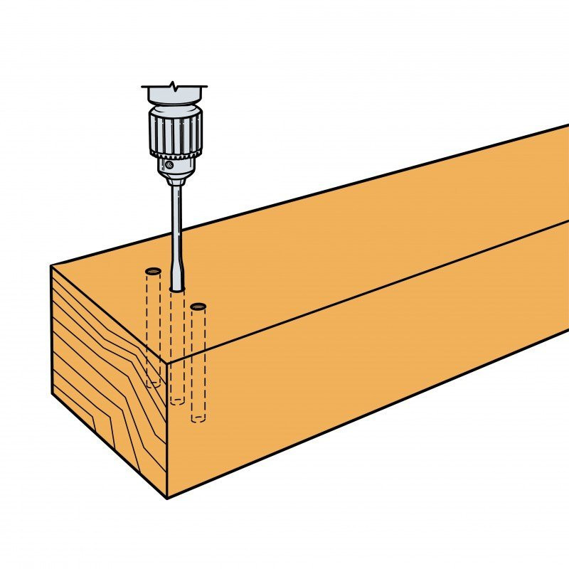 - Die Stabdübellöcher im Nebenträger sind entsprechend dem Lochbild nach ETA zu bohren.