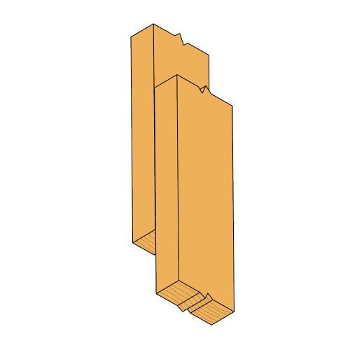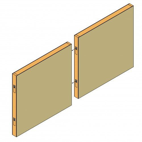 Der Elementverbinder besteht aus zwei gleichen Teilen, die an den Stoßflächen der zu verbindenden Elemente angeschraubt bzw. angenagelt werden. Es ist an nur einem Element eine Aussparung von 15 mm Tiefe erforderlich, bei einer 15 mm starken Beplankung ist lediglich ein Ausschnitt nötig.