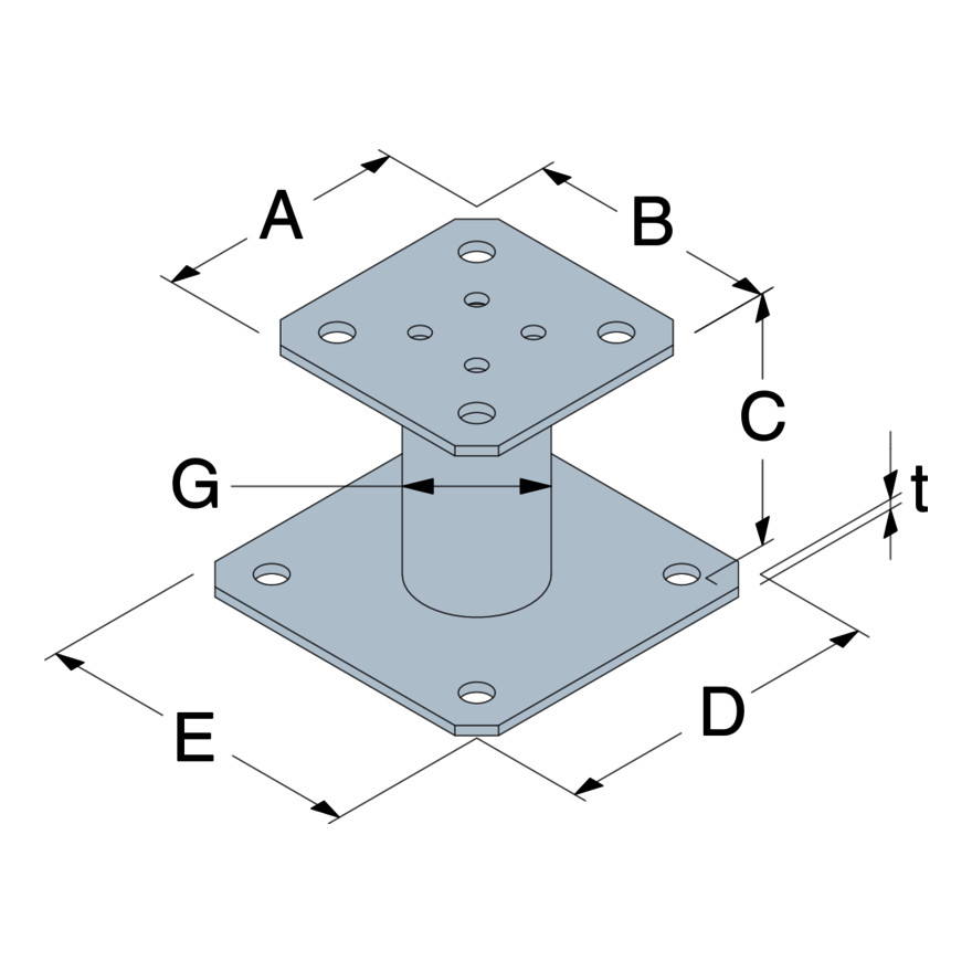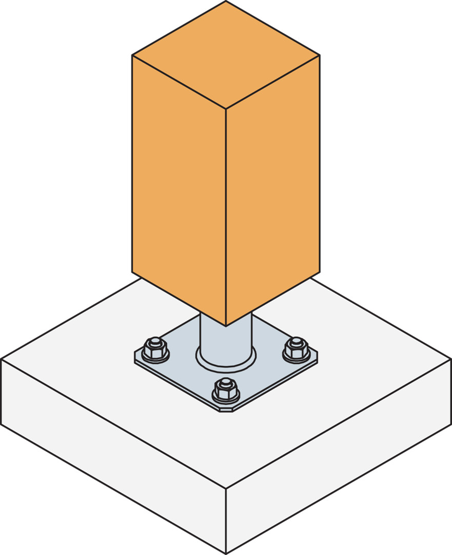 Die PPA Stützenfüße sind stückverzinkt und bestehen aus einem Stahlrohr mit angeschweißter Kopf- und Fußplatte.