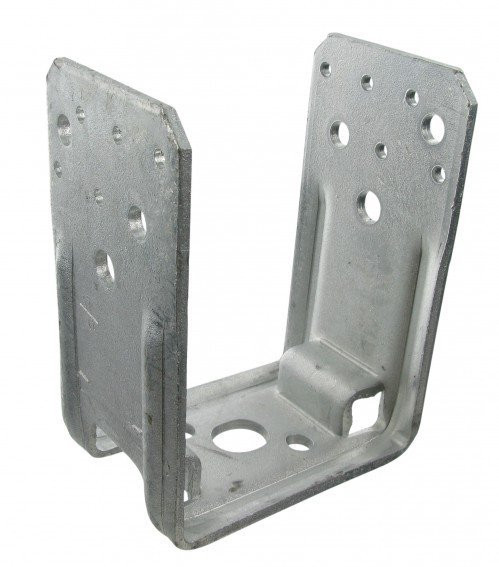 Die PU Pfostenhalter werden direkt auf dem Untergrund aufgestellt und mittels Ankerbolzen befestigt, ein Abstandshalter zum Hirnholz der Stütze ist integriert.