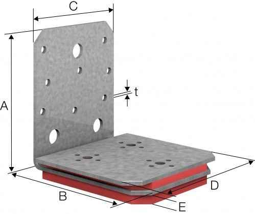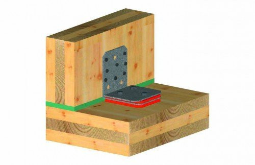 Der ABAI105 ist ein Winkelverbinder für statisch tragende Verbindungen zwischen Wand- und Deckenelementen aus Brettsperrholz, die mit einer 12 mm Sylodyn Zwischenschicht getrennt sind. Der ABAI105 verbindet beide Bauteile ohne eine Erhöhung der Schallübertragung zu bewirken.
