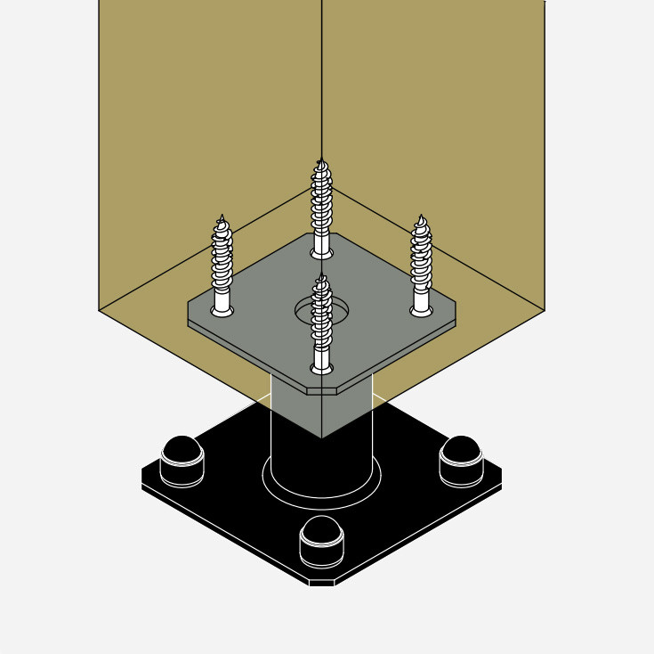 Die PPA Stützenfüße sind für die Aufständerung von Wandkonstruktionen und Veranden vorgesehen.