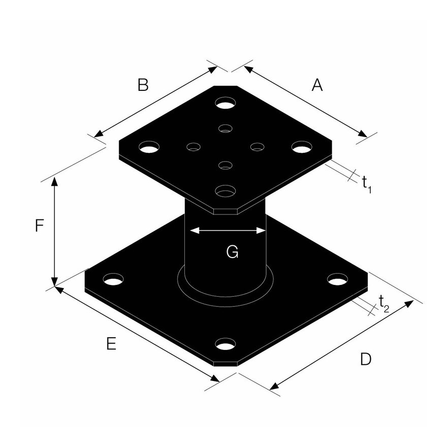 Die PPA Stützenfüße bestehen aus einem Stahlrohr mit angeschweißter Kopf- und Fußplatte.