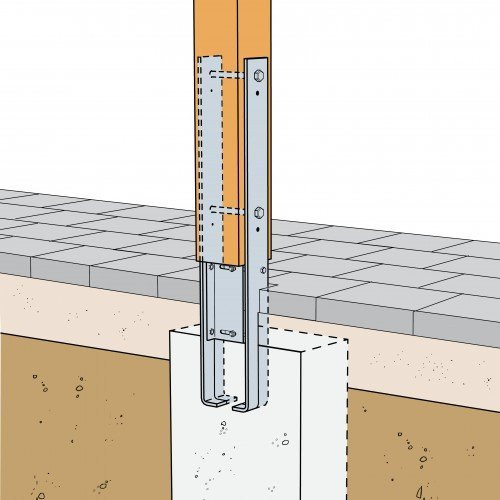 CMR Stützenfüße bestehen aus zwei außenliegenden Stahlteilen, die über ein Mittelstück stufenlos von 120 – 160mm der entsprechenden Stützenbreite angepasst werden können. Sie sind für die Verwendung von Außenbauteilen geeignet.