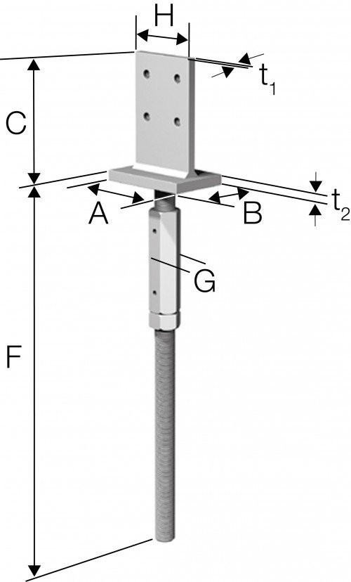 Die PJIS Stützenfüße sind zur Aufnahme von vertikalen und horizontalen Lasten ausgelegt. Der Stützenfuß wird einbetoniert, der Anschluss am Holz erfolgt mit Stabdübeln Ø8 mm in Länge der Holzbreite.