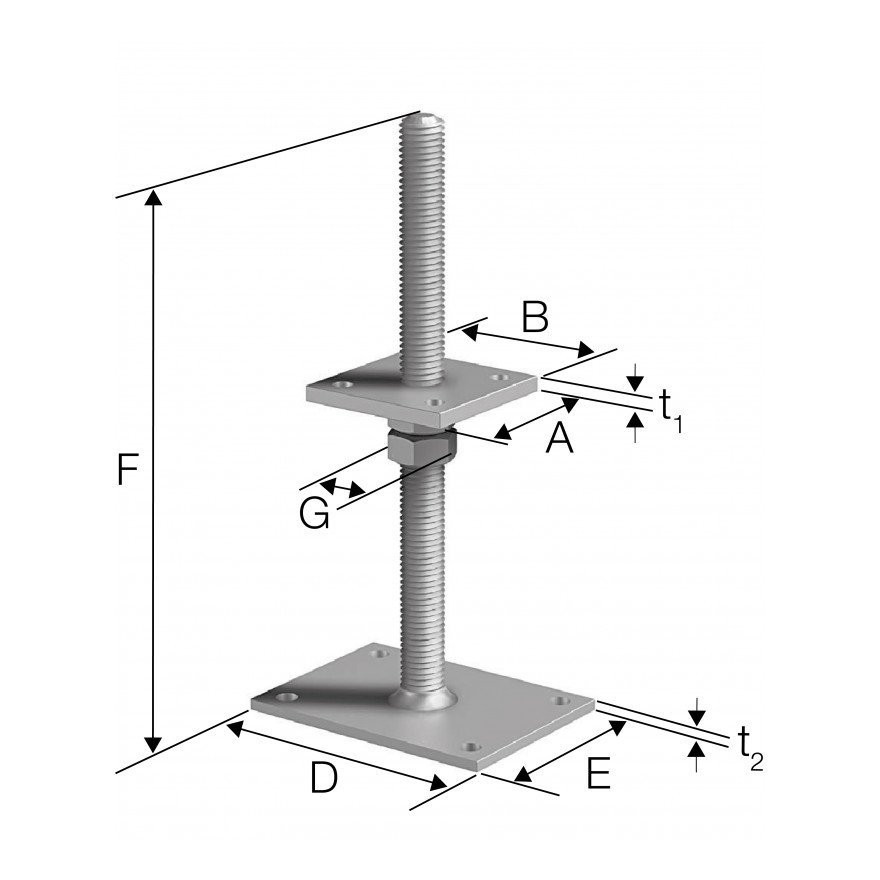 Höhenverstellbar: jaTyp: PT 30 ;A: 80 mm;B: 24 mm;D: 300 mm;E: 140 mm;F: 90 mm