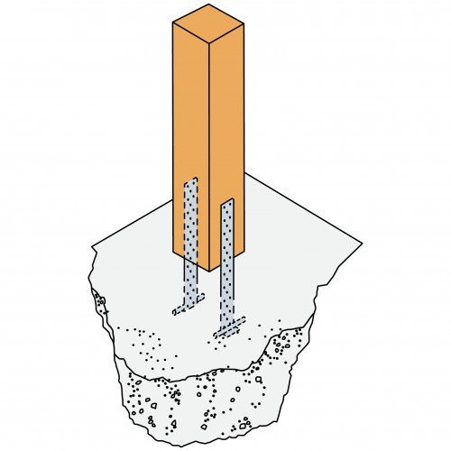 Die BETA Zuganker werden als Zugverbindung von Holzbauteilen an Beton verwendet. Die Anbindung an die Stütze erfolgt mit CNA Kammnägeln oder CSA Schrauben. Der Zuganker muss mindestens 100 mm tief einbetoniert und zur vollen Verankerung um einen Bewehrungsstahl geführt werden. Es werden 5 verschiedene Größen produziert: 200, 300, 400, 500 und 600 mm Länge. Die Breite beträgt immer 40 mm. Die angegebene Länge entspricht der Nutzlänge inkl. des abgekanteten, kurzen Schenkels (20 mm).