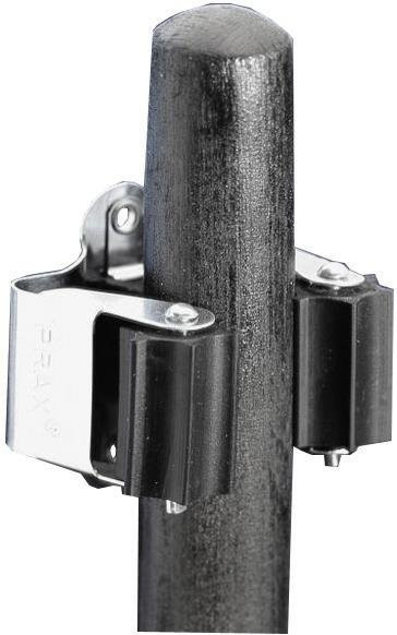 Der ideale unverwüstliche Halter für Stiel und Griffgeräte aller Art. Die Stahlteile sind aus hochwertigem Federstahl. Die sternförmigen Rollen und der Puffer bestehen aus abriebfestem Gummi. Für Geräte bis zu ca. Ø 25 mm, Federstahldicke 0,5 mm. Gummiteile in schwarzer Ausführung.