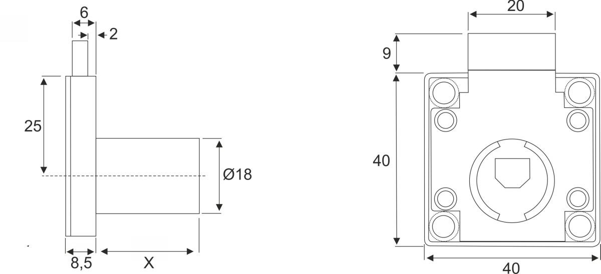 TOPFORM Aufschraubschloss Lad 25 mm Dorn - nach oben schließend