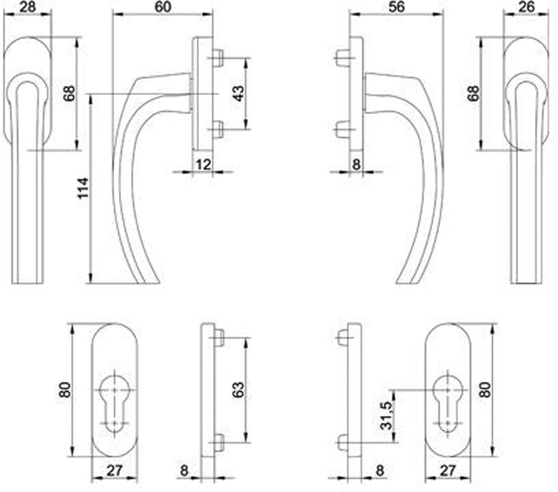TOPFORM Balkontür Rosettengarnitur - Pasas - F9 - PZ - TS bis 92 mm - M5 x 100 mm