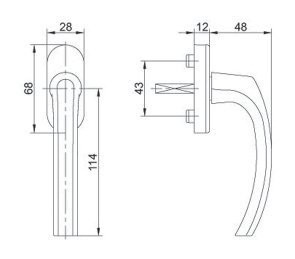 TOPFORM Fenstergriff PASAS - F1 - 43mm Stift / 10mm Nocken