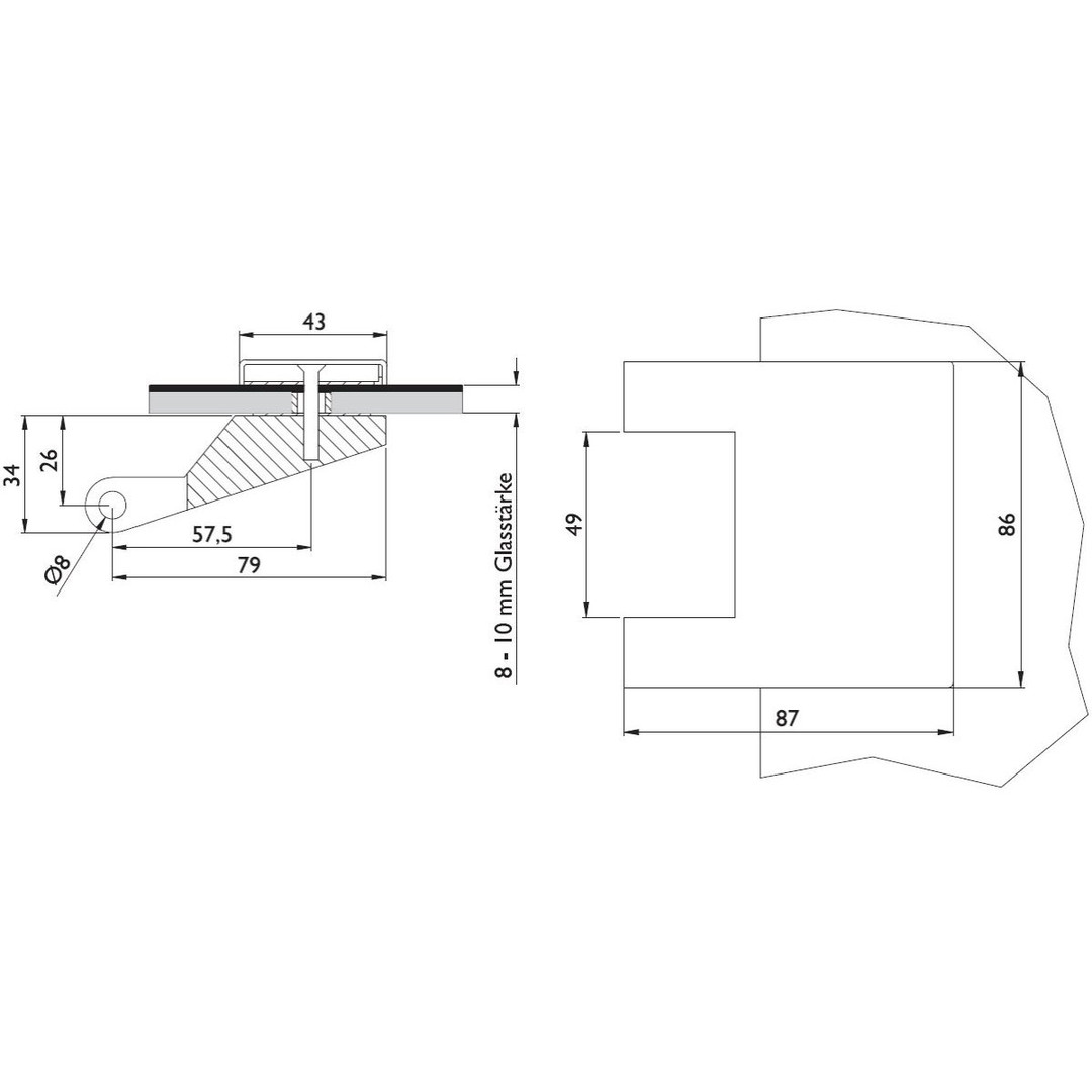 Eckig für Zargen mit 24 mm Falztiefe bei 8 mm Glasstärke, für Flügelgewicht bis 55 kg (pro Paar)