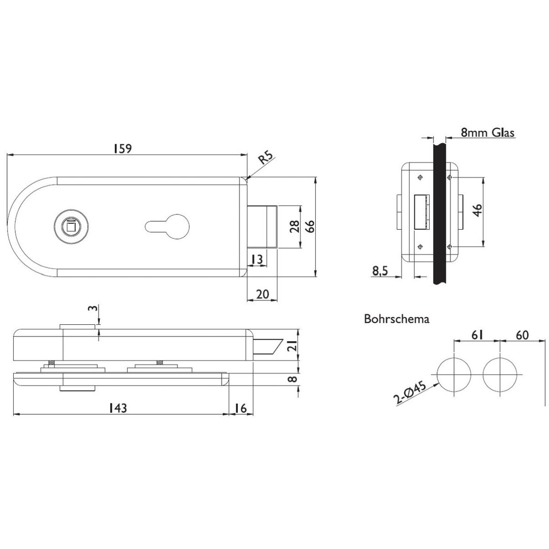 TOPFORM-Glastürbeschlag "LEROS" - ohne Drücker - Alu silber - PZ