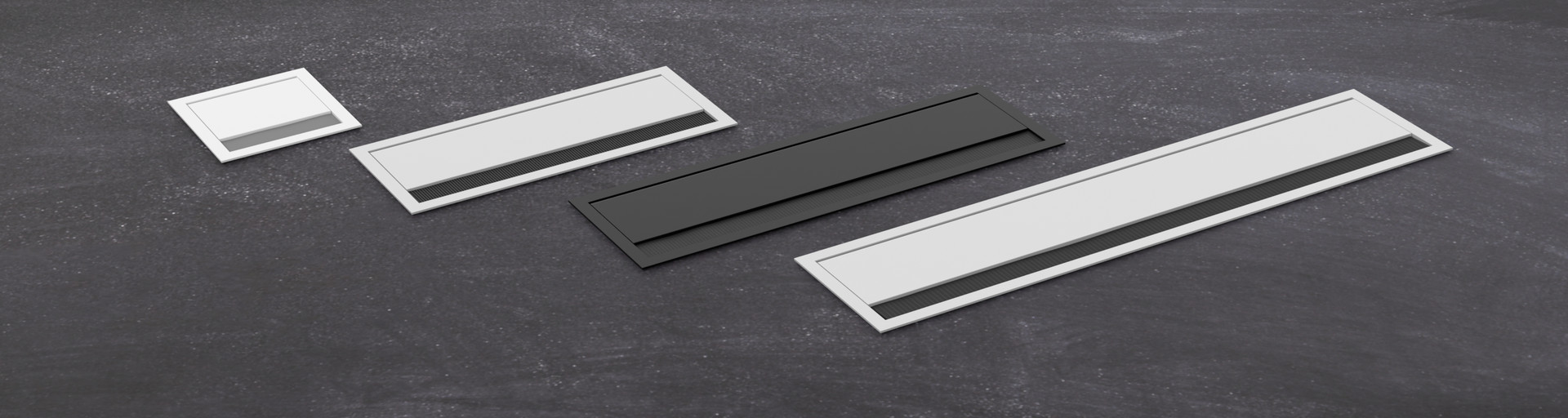 TOPFORM Kabeldurchlass mit Klappdeckel - schwarze Bürstendichtung - Aluminium elox - 450x100x16 mm