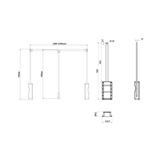 TOPFORM Kleiderlift 18 -20 KG - silberfarbig - Einbaubreite 60 - 83 cm