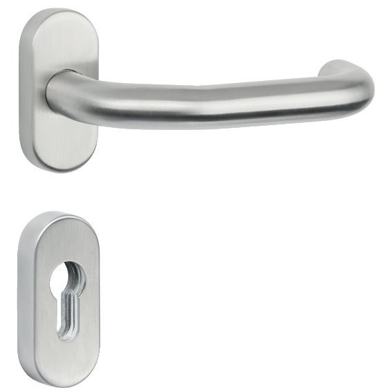 TOPFORM Objekt Drückergarnitur PZ ARGES Edelstahl EN179 auf Ovalrosette