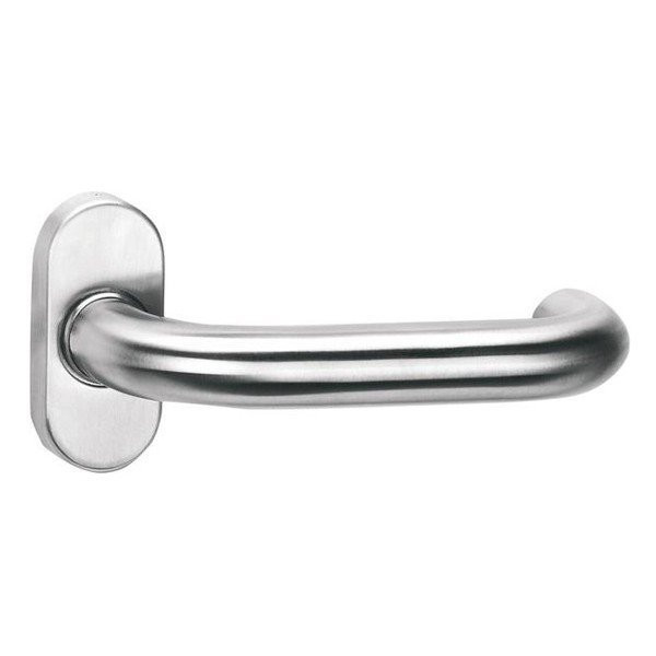 - Hochhaltefeder mit Drehbegrenzung für waagerechten Sitz der Drückerposition. Drücker aus Edelstahl V2A Rohr