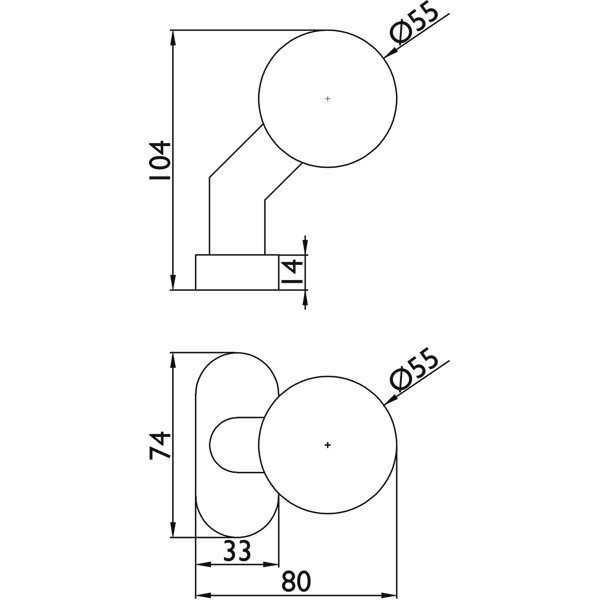 TOPFORM Objekt Kugelknopf Edelstahl auf Ovalrosette gekröpft feststehend