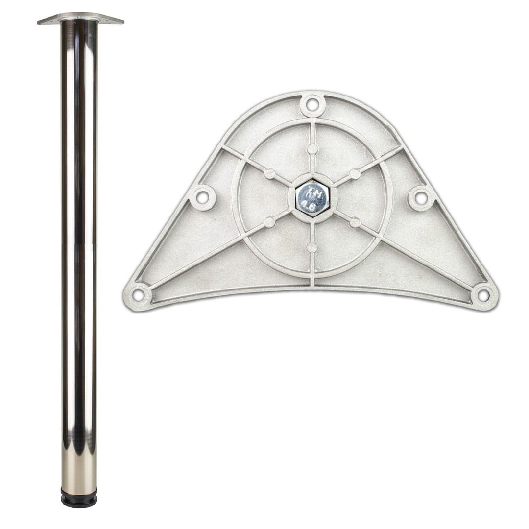 TOPFORM Tischbein 80 x 1100-1120 mm, Stahl chrom poliert, mit Platten-Befestigung rund