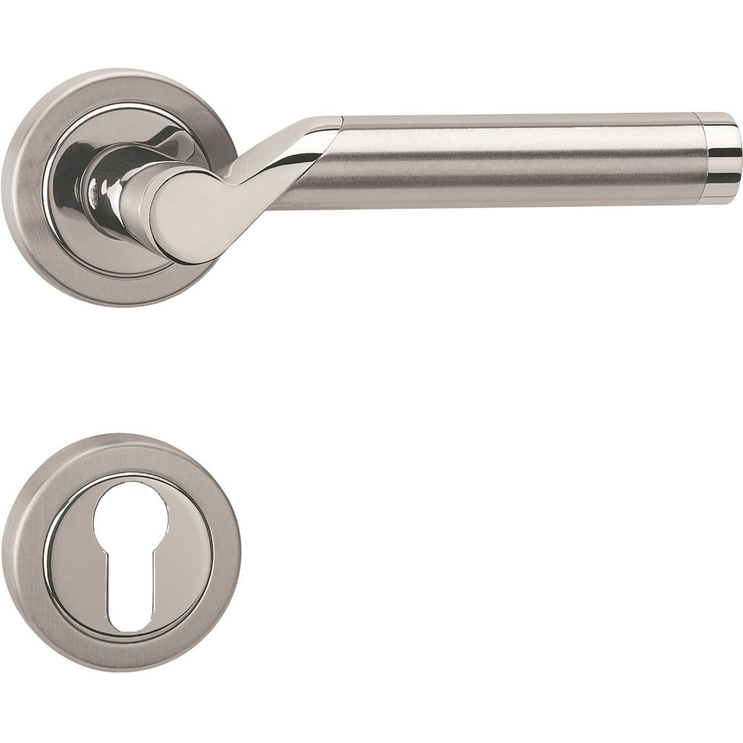 Rosettengarnitur Pluto Messing verchromt/Edelstahl matt Rückholfeder