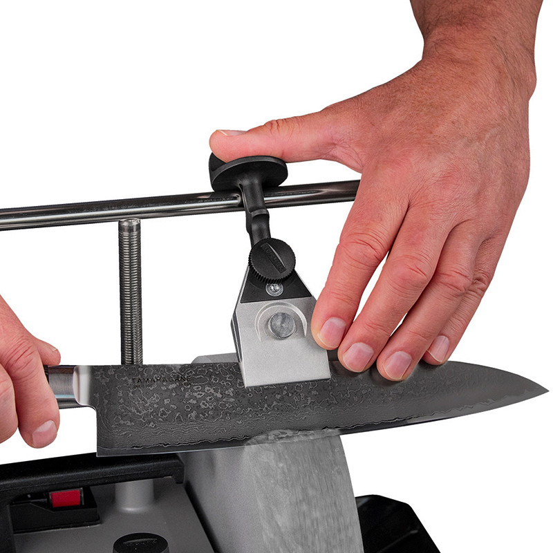 Da die KJ-45 Zentrierende Vorrichtung für Messer mit dem Anschlag frei auf der Universalstütze aufliegt, können Sie der Messerform folgen und sich dabei dennoch auf den zuverlässigen Halt durch die Universalstütze verlassen. So lassen sich die verschiedensten Formen, wie z.B. Handwerks-, Fleischer- und klassische Kochmesser gleichermaßen perfekt schleifen.