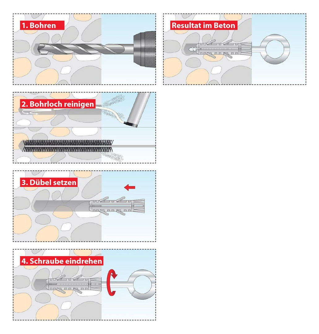 - In Beton und Vollstein empfehlen wir eine Kombination mit dem TOX-Spreizdübel Barracuda 10/50