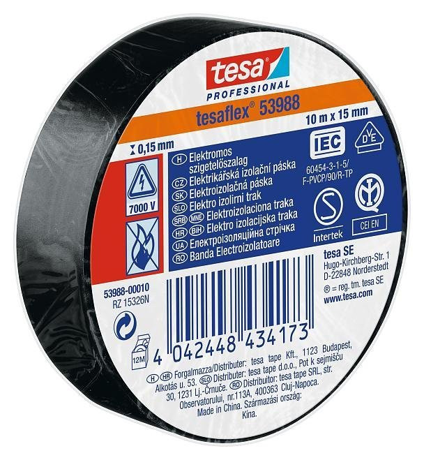 Das Elektroisolierband tesaflex 53988 ist ein zuverlässiger Helfer für Elektriker, Monteure und andere Handwerker. Es zeichnet sich durch sein relativ dickes Tägermaterial, eine hohe Flexibilität und eine sehr gute Klebeleistung (auch auf Stahl und bei niedrigen Temperaturen) aus. Das PVC-Isolierband eignet sich nicht nur für das Isolieren und Kennzeichnen von Kabeln, sondern auch zum Reparieren und Bündeln. Da es in vielen Farben erhältlich ist - rot, blau, braun, schwarz, weiß, grau, grün, gelb und gelb-grün - ist auch ein Einsatz als Markierungsklebeband möglich. tesaflex 53988 ist nach allen relevanten Standards zertifiziert und lässt sich einfach handhaben.